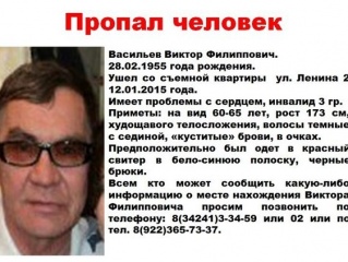 19 января сын пропавшего обратился с заявлением о пропаже отца с отдел МВД по Чайковскому району. По данным полиции, сегодня были проверены места, где мог пребывать Виктор Васильев, но пока эта работа не дала результата. Во многом поиски мужчины затрудняет то, что родственники до сих пор не предоставили в отдел МВД фотографию пропавшего.