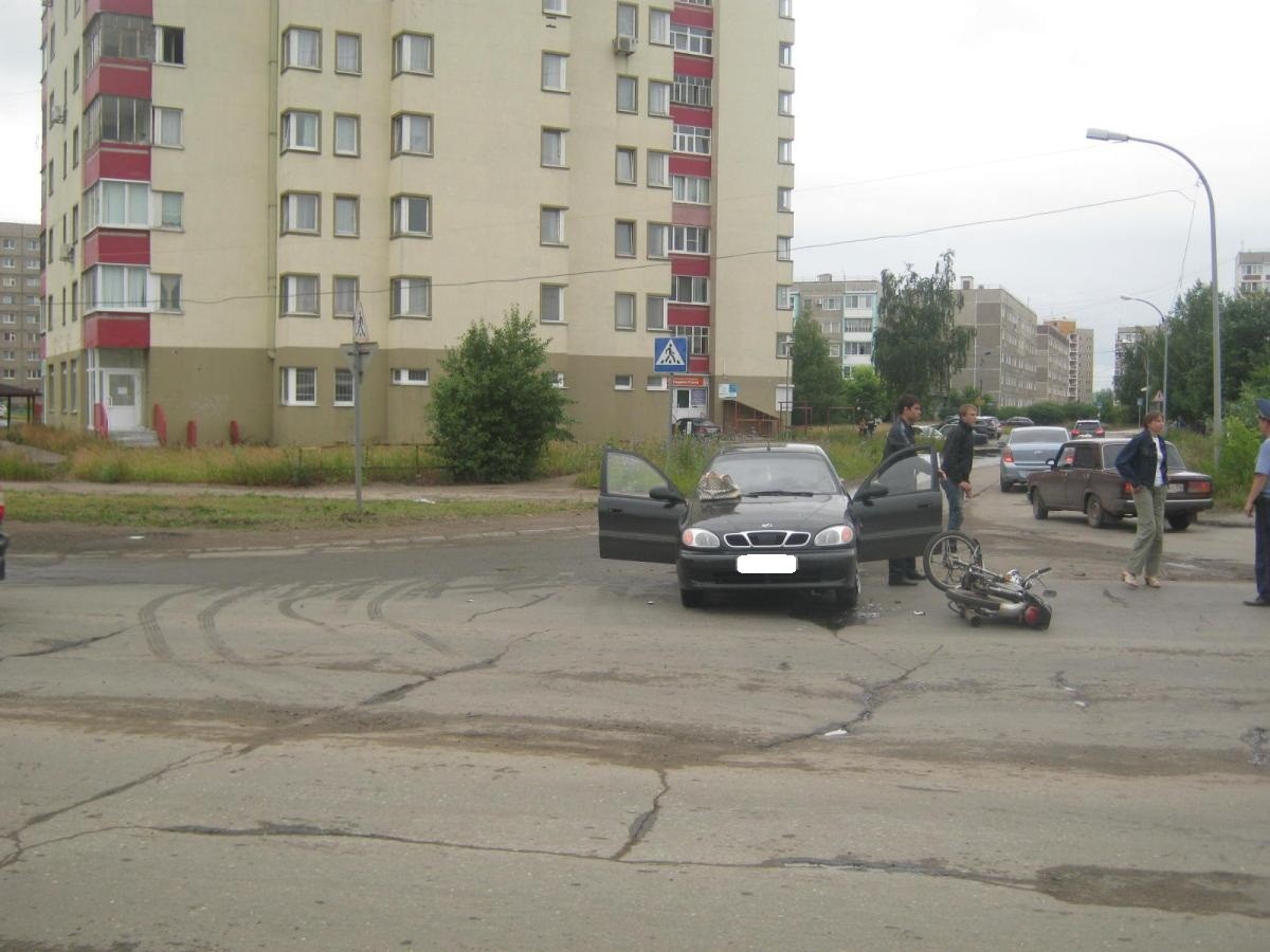 1 июля в 16.15 по улице Азина в направлении Советской двигался ЗАЗ под управлением 30-летнего водителя. Напротив дома № 9 по ул. Азина, при выезде со второстепенной дороги на главную, не предоставил преимущество в движении мопеду, под управлением 15-летнего водителя. Последний двигался по ул. Советской в направлении ул. Строительная.