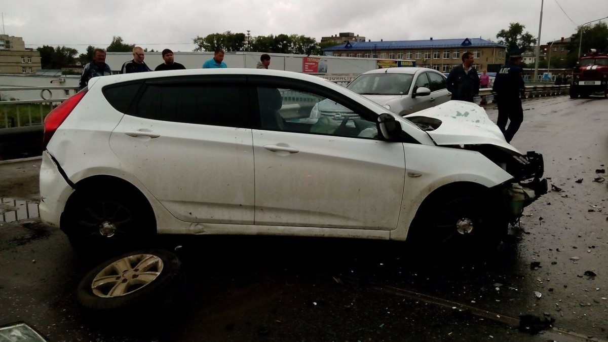 Авария произошла на «горбатом» мосту 13 июля около пяти часов вечера. Со слов инструктора автошколы Евгения, его автомобиль Hyundai Solaris под управлением ученицы двигался по мосту со стороны ул. Вокзальная в сторону ул. Промышленная. В это время автомобиль марки Skoda, двигавшийся во встречном направлении под управлением водителя, по неофициальным данным 1988 года рождения, врезался в отбойник, а затем в ученический Hyundai.