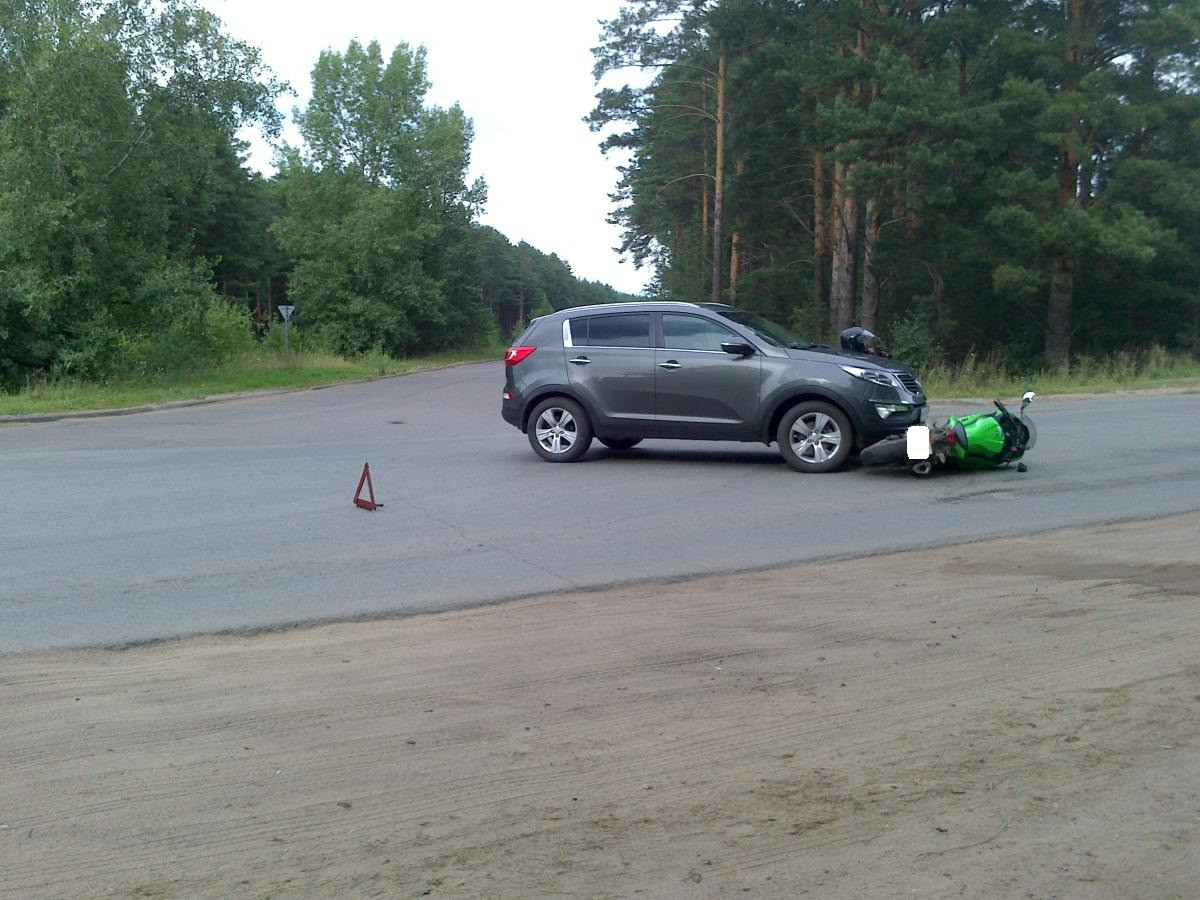 Выяснилось, что в этот же день в 16.50 по ул. Сосновая в направлении ул. 40 лет Октября двигался автомобиль KIA Sportage SLS, за рулём которого находился 52-летний водитель. На перекрёстке ул. Сосновая–ул. 40лет Октября при выезде с второстепенной дороги на главную, он не предоставил преимущество в движении и допустил столкновение с мотоциклом Kawasaki EX300A, под управлением 19-летнего водителя. Последний двигался по ул. 40 лет Октября со стороны ул. Юбилейная в направлении ул. Энтузиастов.