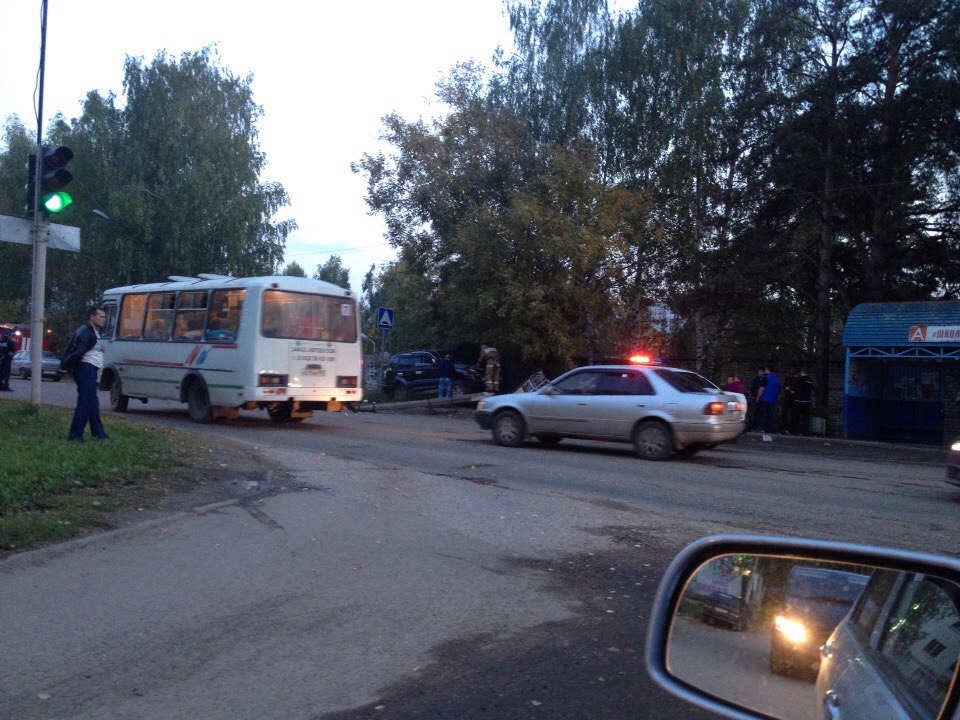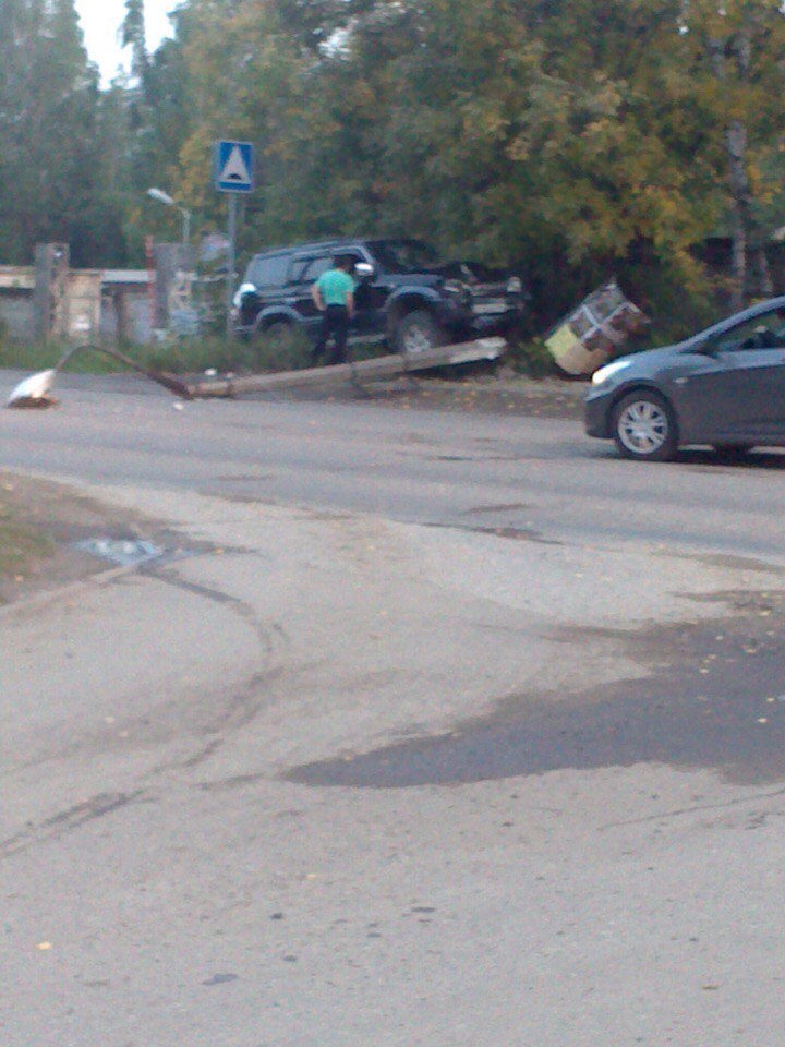 В Чайковском внедорожник снес столб, чудом не зацепив остановку