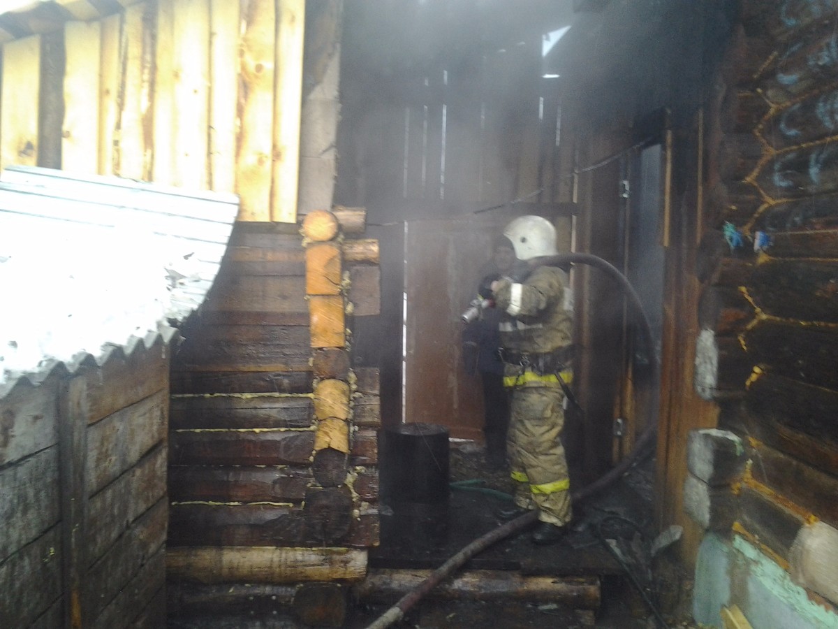 Тягой пламя из бани перекинулось на дом, который находится на достаточно близком расстоянии. В сенях дома находился газовый баллон, который под воздействием большой температуры взорвался. Частично пострадали стены в доме.
