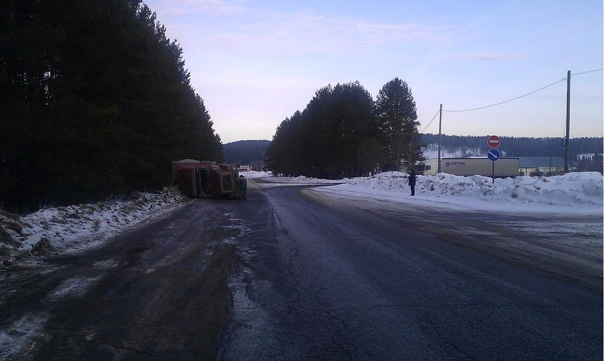 В Чайковском районе дальнобойщик опрокинул фуру