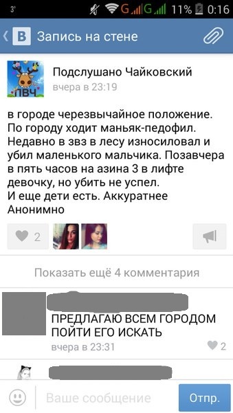 Запись об этом с фотороботом и описанием появилась в пятницу, 1 апреля, на «стене» в группе «Город Чайковский (18+). Официальная группа». Возможно, это всего лишь первоапрельская шутка, только не очень удачная.