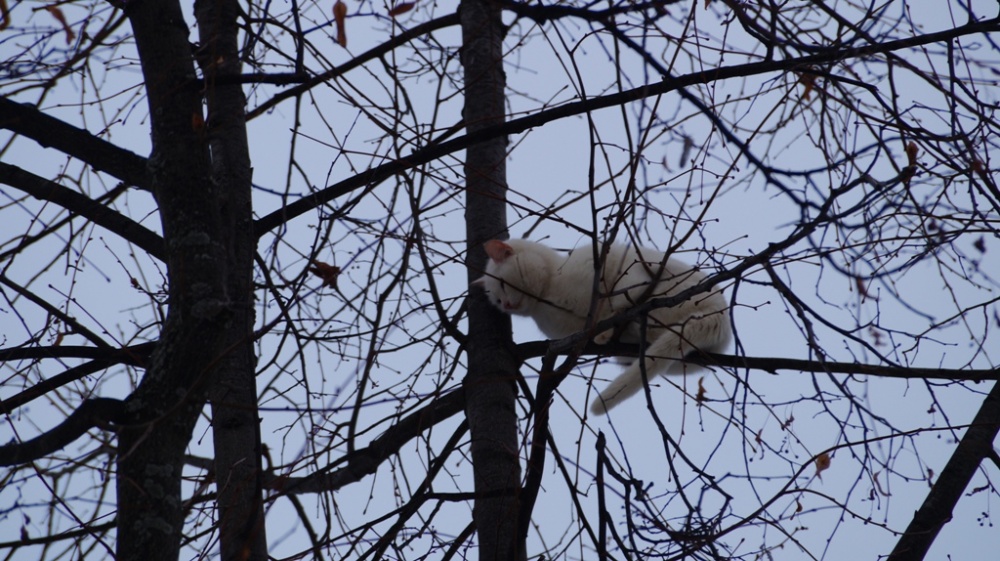 В Чайковском у дома по ул. Кабалевского, 21, четвёртый день на дереве замерзает кошка. Местные службы спасения отказываются идти на помощь. По словам местных жителей, белая кошка влезла на дерево, спасаясь от бродячих собак в субботу 10 декабря. За это время детьми и взрослыми было предпринято несколько попыток снять животное с высокой липы, но испуганное животное взбиралось ещё выше.