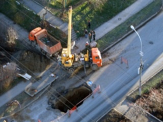 Отметим, что на месте крушения находился канализационный люк и ещё в октябре здесь образовался небольшой провал. Причиной этому послужила протечка воды из канализационного колодца, которую по неизвестным причинам не устраняли. Несмотря на то, что движение по этому участку дороги было затруднено его не закрывали.