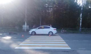 Водитель KIA допустил наезд на велосипедиста, который в момент автоаварии спешившись переходил дорогу по нерегулируемому пешеходному переходу.