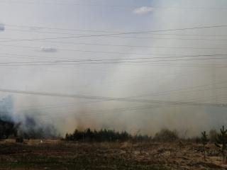 Горит сухая трава и лес