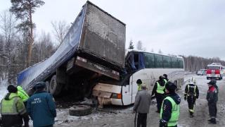 На автотрассе Прикамья фура зацепила автобус с детьми