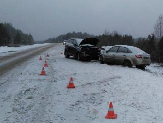 На трассе в Чайковском округе произошло дорожное происшествие, в котором пострадали водители и пассажиры двух автомобилей.