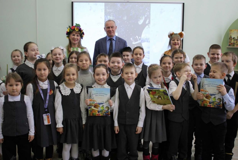 На презентации книги «Чудесная экспедиция Лап Лапыча», которая прошла в Центральной детской библиотеке г. Чайковского, присутствоал директор Воткинской ГЭС Алексей Бяков и ученики начальных классов школы №10.