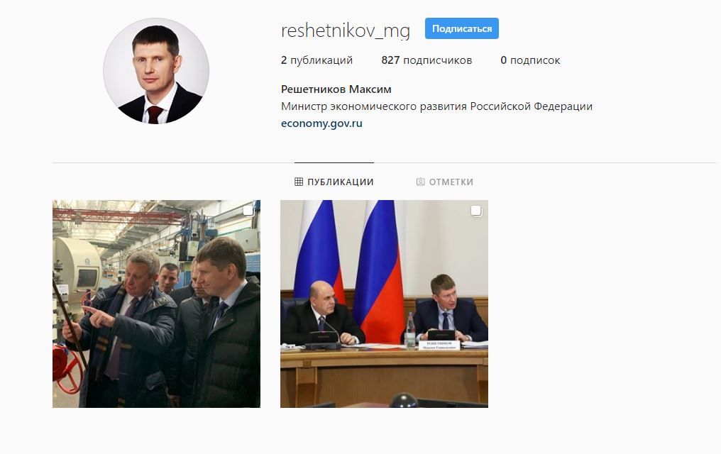 Бывший губернатор Пермского края, а ныне министр экономического развития России Максим Решетников завёл себе новый аккаунт в соцсети Instagram.