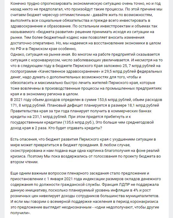 «Опасения депутатов фракции ЛДПР связаны с тем, что бюджет развития может превратиться в бюджет проедания. Единственное, что мы поддерживаем правительство Пермского края в том, что социальная ориентированность остаётся. Мы считаем, что это правильное решение», - отмечает Олег Постников.