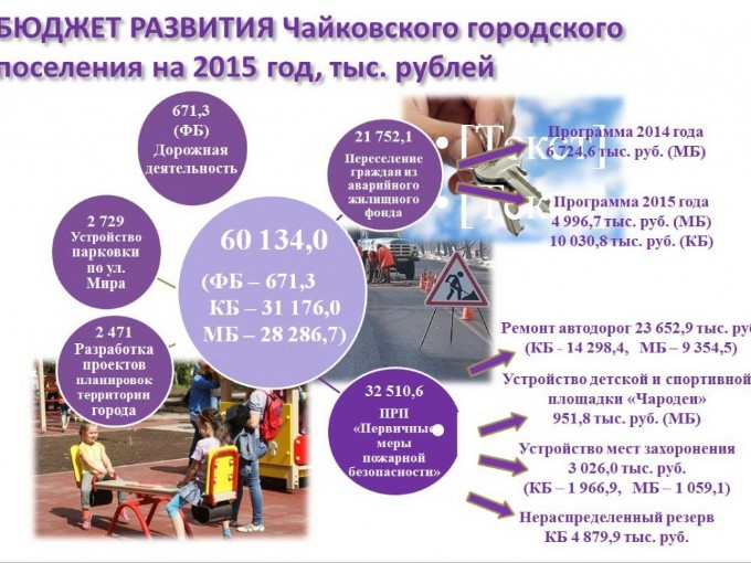 Среди наиболее важных для города расходов – переселение из аварийного жилищного фонда. На эти работы из местного бюджета выделены 11.7 млн руб. и десять миллионов из бюджета Пермского края. По итогам года новее жилье обретут сорок четыре семьи, проживающие по адресам: Уральская, 6, 15, 17, Советская, 58а, 60.