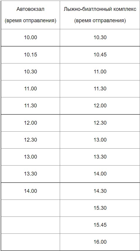 Как рассказали в пресс-службе администрации Чайковского городского округа, проведение соревнований по биатлону повлияет на движение автобуса, который осуществляет перевозку по маршруту «Автовокзал – Лыжно-биатлонный комплекс». В пресс-службе опубликовали следующее расписание его движения на 24 и 25 число:
