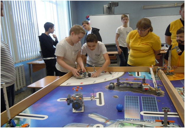 Соревнования «FRO 9+» (открытый чемпионат Fest Russia Open 9+) проходили по теме: «На орбите». Участники робофеста прошли испытания в четырёх видах соревнований: «Игра на поле», «Защита проекта по теме «На орбите», «Тимбилдинг «Базовые ценности», «Защита конструкции робота».