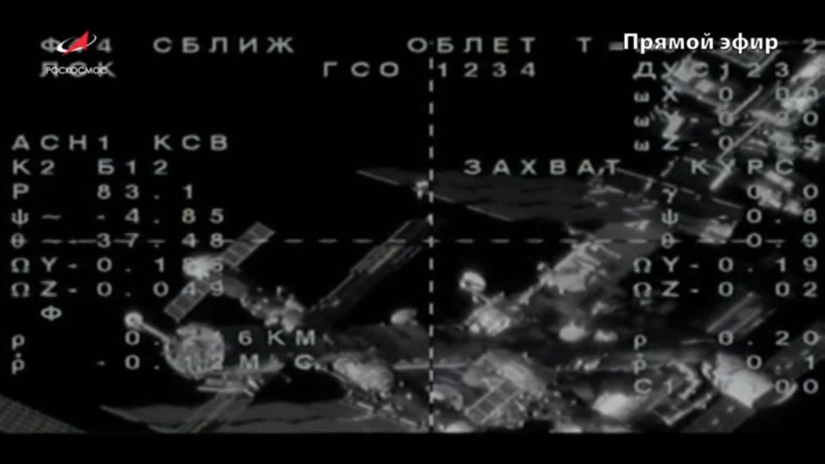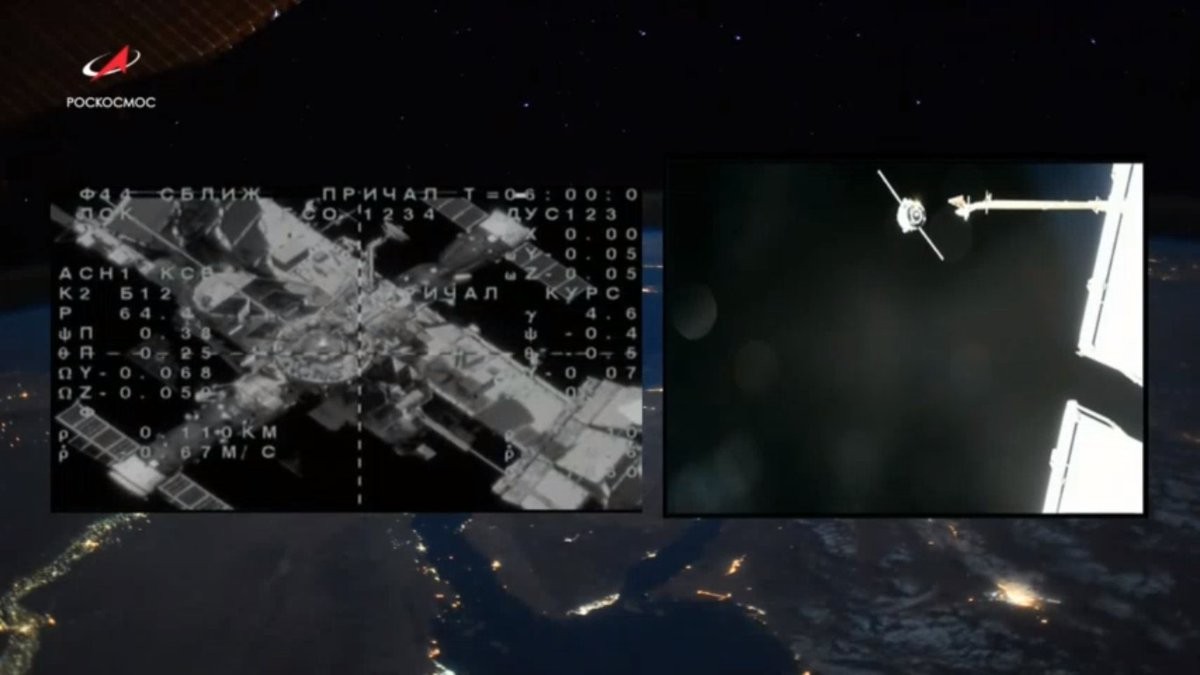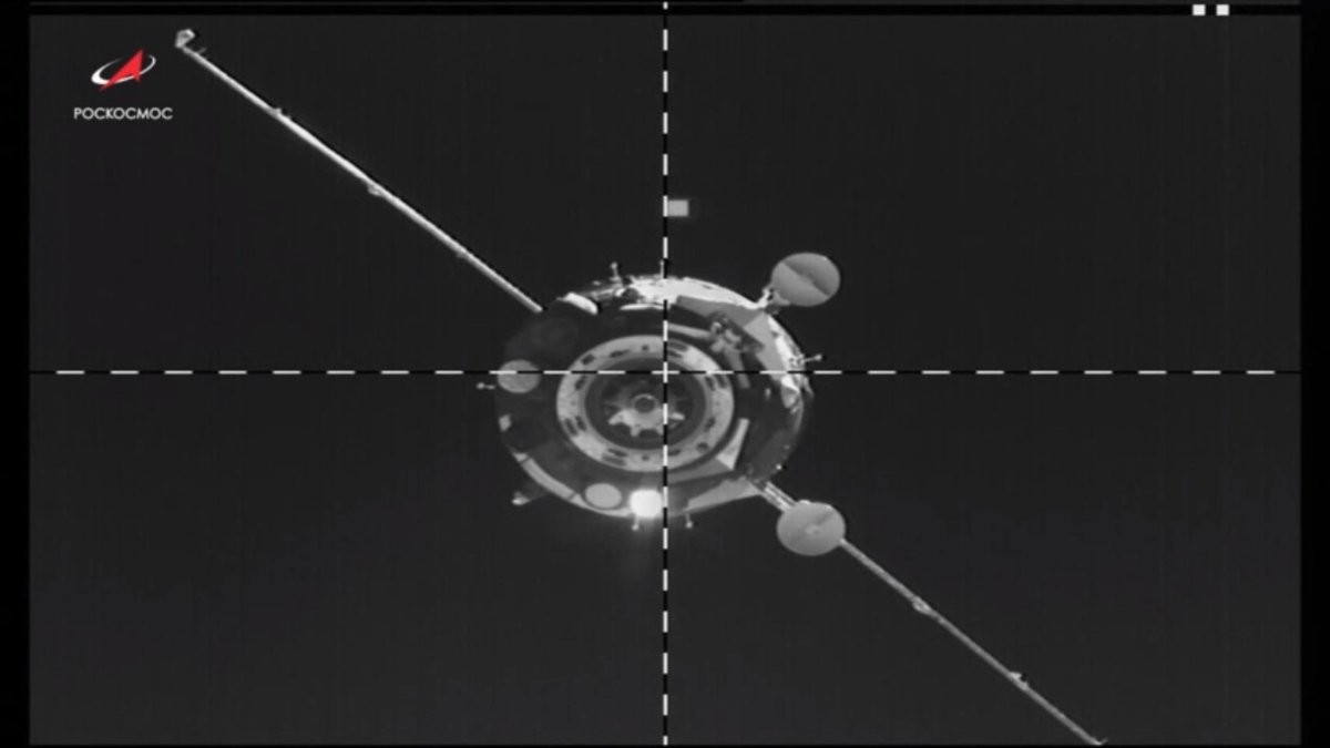 Корабль пристыковался в автоматическом режиме к агрегатному отсеку служебного модуля «Звезда», при этом касание состоялось на четыре минуты раньше запланированного времени.