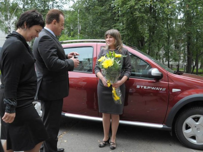 Вот уже несколько лет Ольга Мущинкина совмещала работу в двух селах – Альняш и Сосново. Сельские школы не имеют возможность в каждой держать своего преподавателя, поэтому пришлось Ольге Ивановне работать сразу на две школы. Чтобы поддержать преподавателя, районные власти и управление образования поучаствовали в краевой программе «Мобильный учитель» и добились получения автомобиля «Рено Сандеро» для Ольги Ивановны. ГСМ, обслуживание автомобиля – все будет делаться за счет района. От Ольги Мущинкиной требовалось только наличие водительского стажа не менее трех лет, а он у нее, конечно же, был. Ключи от новенького автомобиля учительнице вручили представители районной власти и начальник управления образования Елена Остренко. Ольга Ивановна осталась довольна и поблагодарила всех за проявленное внимание к проблемам образвания, пообещала и впредь качественно выполнять свою работу.