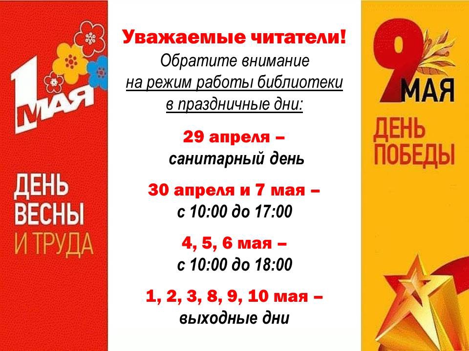 Библиотека ждёт своих маленьких читателей 30 апреля и 7 мая с 10:00 до 17:00, 4, 5 и 6 мая с 10:00 до 18:00.
