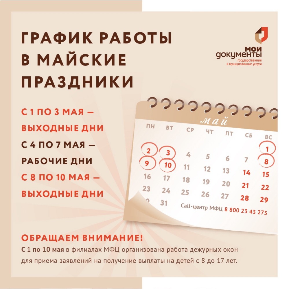 2 мая отделения Почты будут работать по обычному графику, 3 мая будут принимать клиентов в соответствии с графиком субботы, а 10 мая - по режиму работы воскресенья.