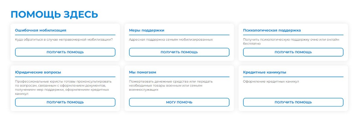 Кроме того, на сайте можно найти информацию о пунктах сбора помощи мобилизованным, новости по теме и другие полезные сведения.
