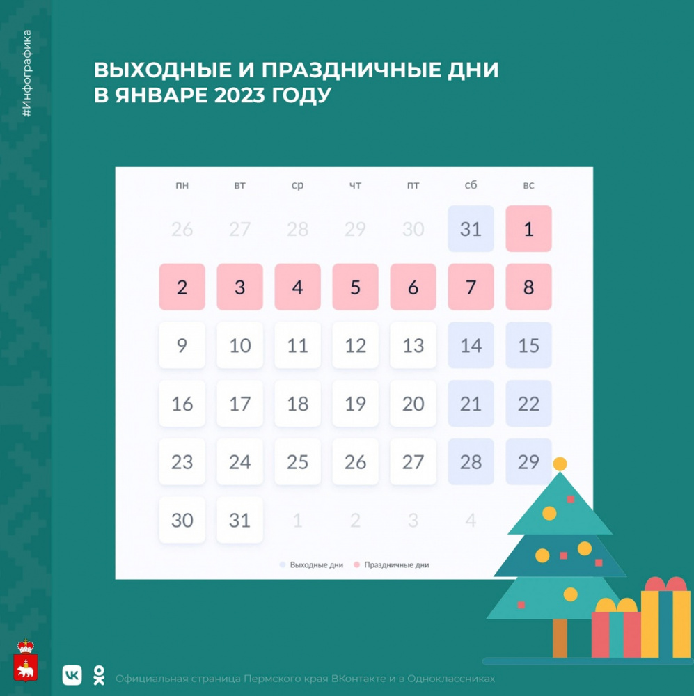 Начинаем январь с праздничных дней - новогодние каникулы продлятся с 31 декабря по 8 января. Всего в январе будет 17 рабочих дней и 14 выходных и праздничных. Также дополнительные нерабочие дни будут в феврале, марте, мае, июне и ноябре.