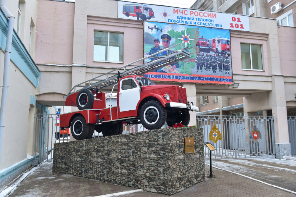 Церемония открытия постамента пожарной машины АЛ-17 (с 17-метровой пожарной лестницей), посвящённого подвигу пожарных и спасателей Пермского края, прошла 27 декабря.Объект разместился у главного здания ГУ МЧС России по Пермскому краю на улице Екатерининской, 53а в Перми.