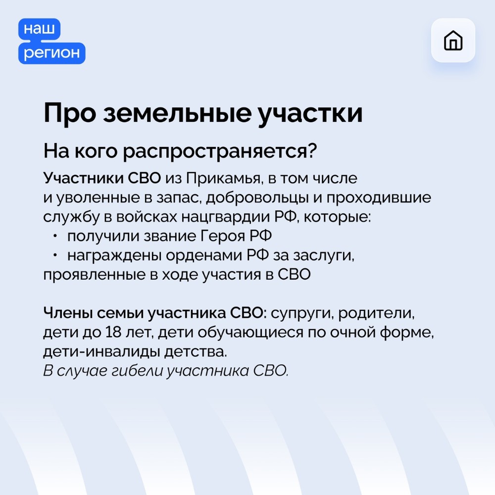 Второй льготой смогут воспользоваться не все. Земли смогут получить участники специальной военной операции, из числа военнослужащих, в том числе уволенных в запас, добровольцев и проходивших службу в войсках национальной гвардии Российской Федерации, удостоенные звания Героя РФ или награжденные орденами РФ за заслуги, проявленные в ходе участия в СВО. В случае их гибели мерой поддержки смогут воспользоваться члены семей.