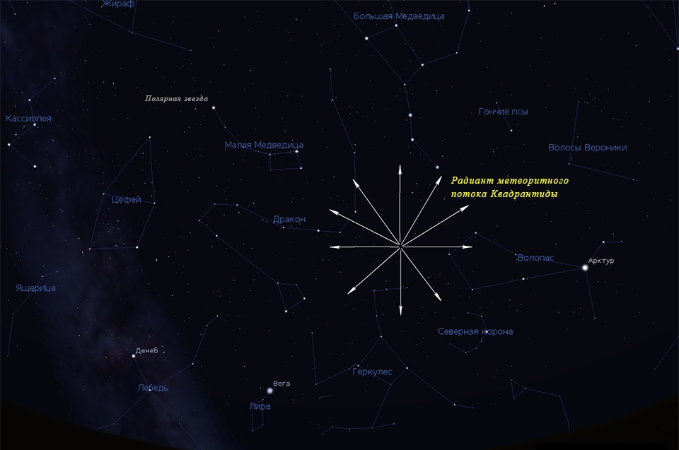Максимум метеорного потока ожидается с ночи 3-го на утро 4-го января. Наблюдать падающие «звёзды» лучше далеко за городом при ясной погоде с 23:00 до 02:00 в северо-восточной стороне небосвода - в созвездиях Волопаса и Дракона. Затем восходящая Луна осветит небо и помешает наблюдениям.
