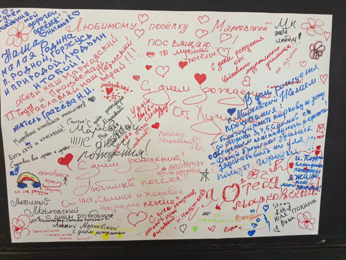 Каждый гость мог написать поздравление и пожелание на большой открытке, размещенной в свободном доступе. К концу праздника на ней не осталось свободного места, все пространство было усыпано добрыми словами.