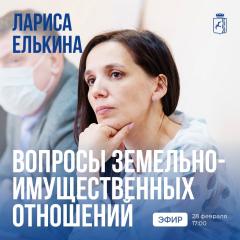 Сегодня, 28 февраля, пройдёт прямой эфир с Ларисой Елькиной, начальником управления земельно-имущественных отношений.