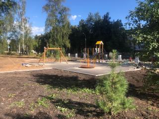Благоустройство территории возле городской детской поликлиники продолжается. В скором времени здесь появится ещё одна детская площадка.