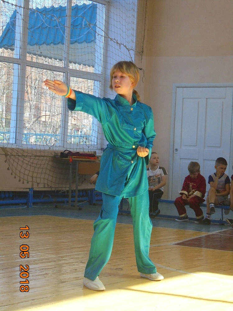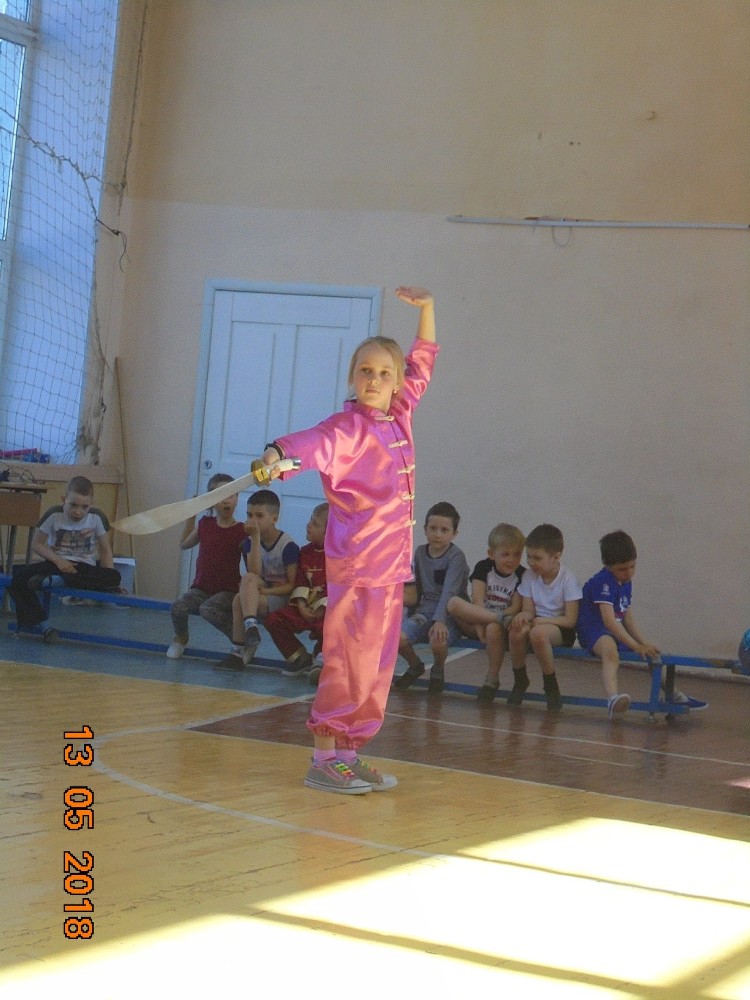 На следующий день воспитанники клуба ушу «Китайский дворик» приняли участие в показательных выступлениях и соревновании по базовым формам спортивного ушу среди детей от 4 до 12 лет. Соревнования проходили в спортивном зале школы № 10