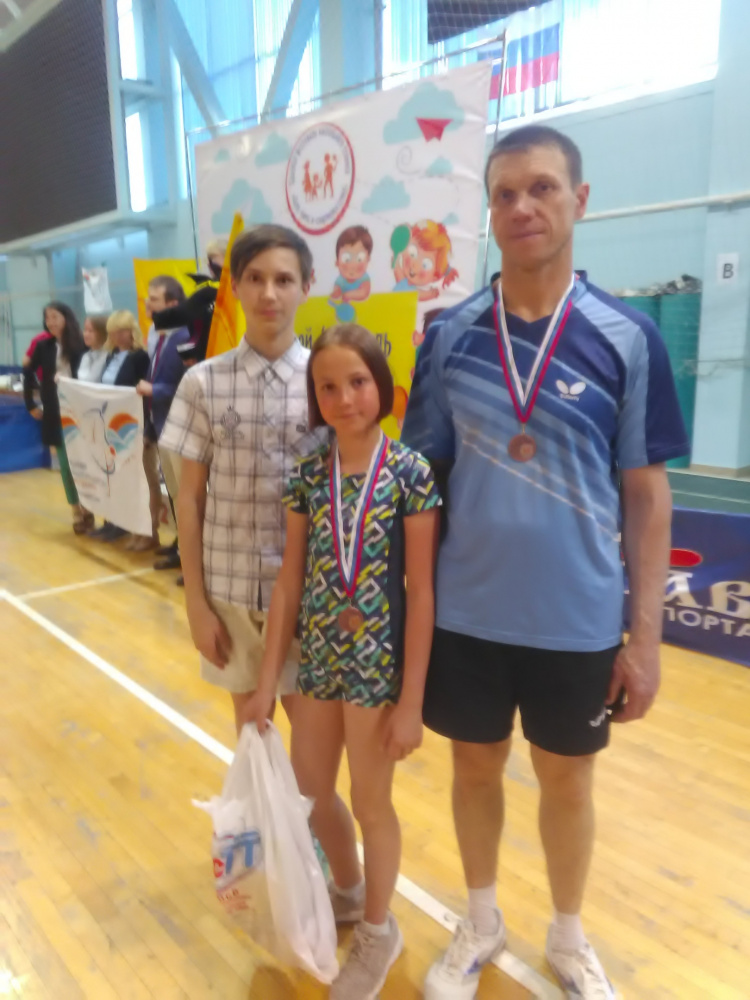 В старшей группе Владимиру и его сыну Арсению в полуфинальных поединках удачи не хватило совсем немного, зато в средний возрастной группе Владимир с дочерью Таисией завоевали бронзовые медали, уступив в полуфинале лишь чемпионам из Перми – профессиональным теннисистам, имеющим победы на чемпионатах России.