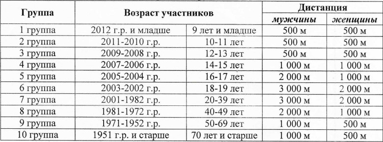 Возраст при этом не имеет значения - для всех найдётся своя дистанция. Вот таблица возрастных групп и предназначенных для них дистанций для пробега: