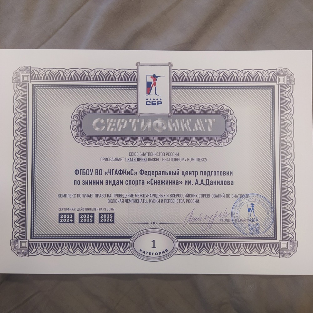 Лыжно-биатлонный комплекс Федерального центра подготовки по зимним видам спорта «Снежинка» им. А.А. Данилова (структурное подразделение Чайковской государственной академии физической культуры и спорта) получил право на проведение международных и всероссийских соревнований, включая чемпионаты, кубки и первенства. Сертификат, подтверждающий соответствующую категорию, выдан на три сезона - 2023/2024, 2024/2025, 2025/2026.