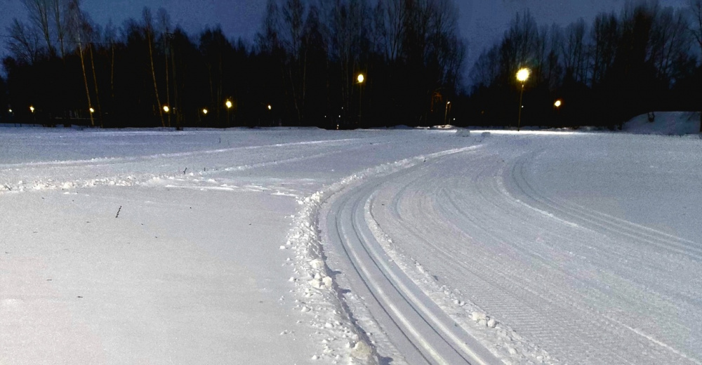 Освещённая выровненная лыжня ждёт любителей лыжных прогулок