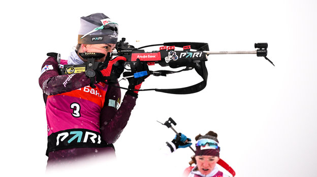 В аналогичной дисциплине у женщин не было равных Виктории Сливко. Она единственная из всех участниц закрыла 19 из 20 мишеней и финишировала с большим отрывом. Серебро и бронза достались Полине Шевниной и Ларисе Куклиной, которые выявляли лучшую в очной схватке на последнем круге.