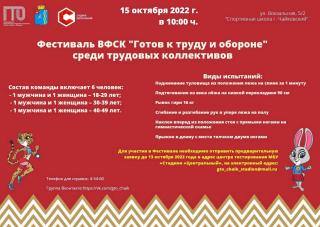 Предприятия Чайковского городского округа приглашают принять участие в фестивале ВФСК ГТО среди трудовых коллективов.